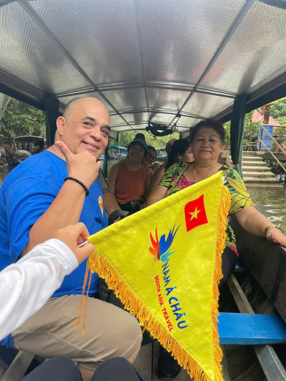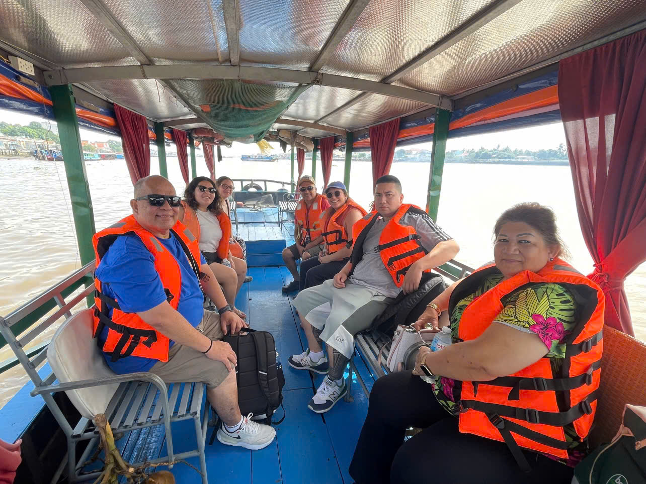 -Xuống thuyền máy tham quan Sông Tiền.